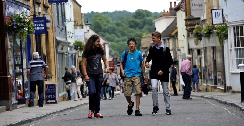 学校から歩いて数分のところにあるシャーボーンは、のどかで治安のよい小さな街です。1本のハイストリートに、ティールームやカフェ、ベーカリー、雑貨屋さん、お洋服屋さん、郵便局など、可愛らしいお店が並びます。古くからの伝統が残る石造りの建物や教会がとても奇麗です。
